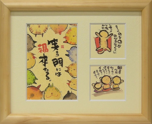 「取寄せ品 御木幽石 笑う門には福来る ナチュラル 三ツ窓額装 フレーム付きミニアート メッセージアート」
