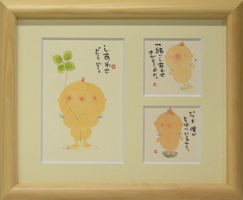 取寄せ品 御木幽石 しあわせどうぞ ナチュラル 三ツ窓額装 フレーム付きミニアート メッセージアート