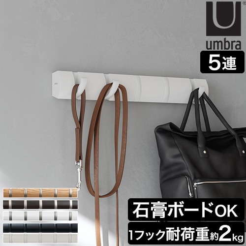 アンブラ 壁掛けフック フリップフック 5連フック コートハンバー ハンバーフック コート掛け 小物掛け 折りたたみフック ウォールフック 洋服掛け ハンバーラック モダン ウォールハンバー 石膏ボード 木製 玄関 省スペース umbra FLIP 5 HOOK