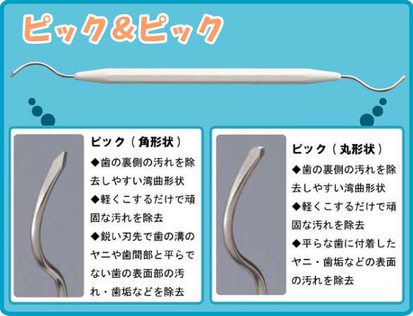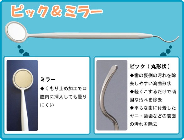 [サイズ]ピック&ミラー(約)1.5×17×2cmピック&ピック(約)1.5×16×0.7cm[重量]ピック&ミラー(約)8gピック&ピック(約)5g[材質]ピック&ミラー 柄:ABS樹脂 ピック:ステンレス(SUS304) ミラー:PET(くもり止め加工 【フィルム:トリアセテート】)保護チューブ:シリコンゴム ピック&ピック 柄:ABS樹脂 ピック:ステンレス(SUS304) 保護チューブ:シリコンゴム[生産国]日本[JAN]ピック&ミラー4947651102003 ピック&ピック4947651101006[備考]■商標登録番号:3203188■耐熱温度:(ピック部分のみ)80℃