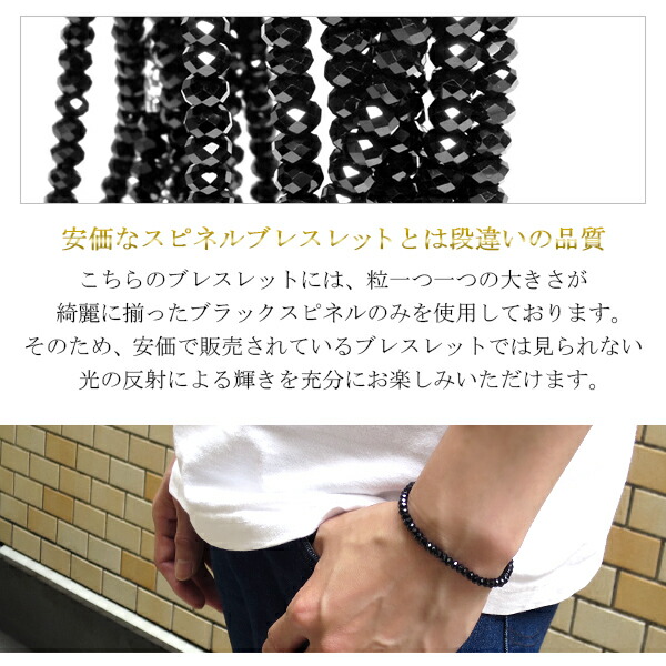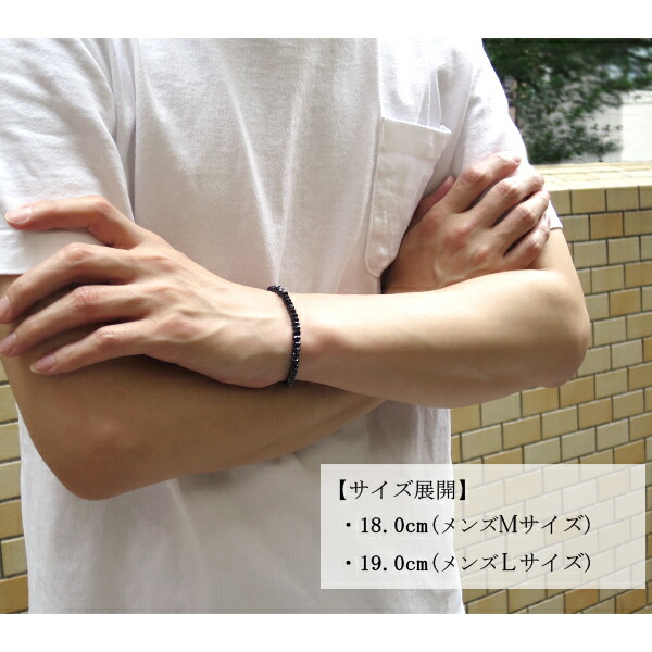 天然石 ブレスレット スピネル メンズ 黒 ブラック パワーストーン【新宿銀の蔵】