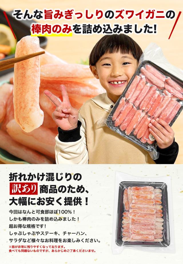 かに 可食部100% 訳あり ミニ 折れ棒 生ずわい蟹 ポーション 500g お刺身OK 殻なし 全部むきました 冷凍便 蟹 カニ ずわいがに ズワイガニ のし対応 カット済み 海鮮 食品 グルメ 海鮮 プレゼント ギフト プレゼント