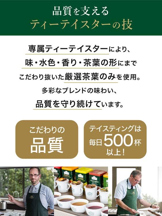 ●アーマッドティーのこだわり:茶葉はイギリス本国のティーテイスターが世界中から厳選したものを使用。
