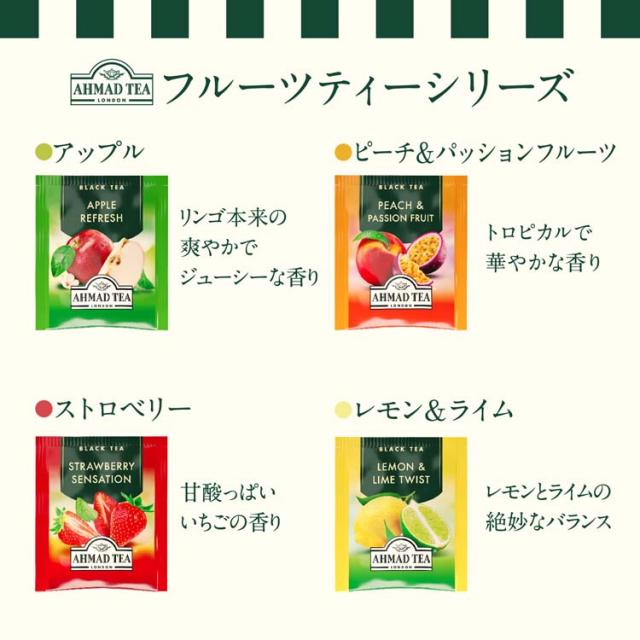 ●フルーツが豊かに香るフレーバーティー詰め合わせ4種セット。英国紅茶ブランドAHMAD TEA(アーマッドティー)が贈るおうちでカフェ気分を楽しめる本格紅茶のティーバッグ。