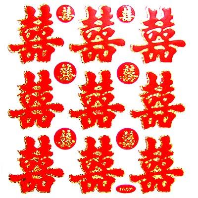 お祝いに 双喜ステッカー【ネコポス便可】 |チャイナ,グッズ,ダブルハピネス,中国,中華街,レトロ,雑貨,,昭和,アイテム,お土産,ギフト,誕生日,プレゼント,グッズ,中国シール