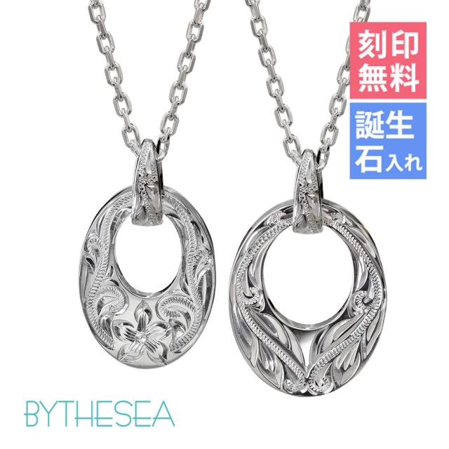 ハワイアンジュエリー ネックレス ペア 誕生石 シルバー ハワイアンジュエリー ペアネックレス 刻印 2本セット オーバル Sサイズ Lサイズ ロジウムコーティング シルバー925 大人 シンプル カップル 夫婦 プレゼント ホワイトデー 卒業式 入学式 【品番:CG-SP308-SP309P】