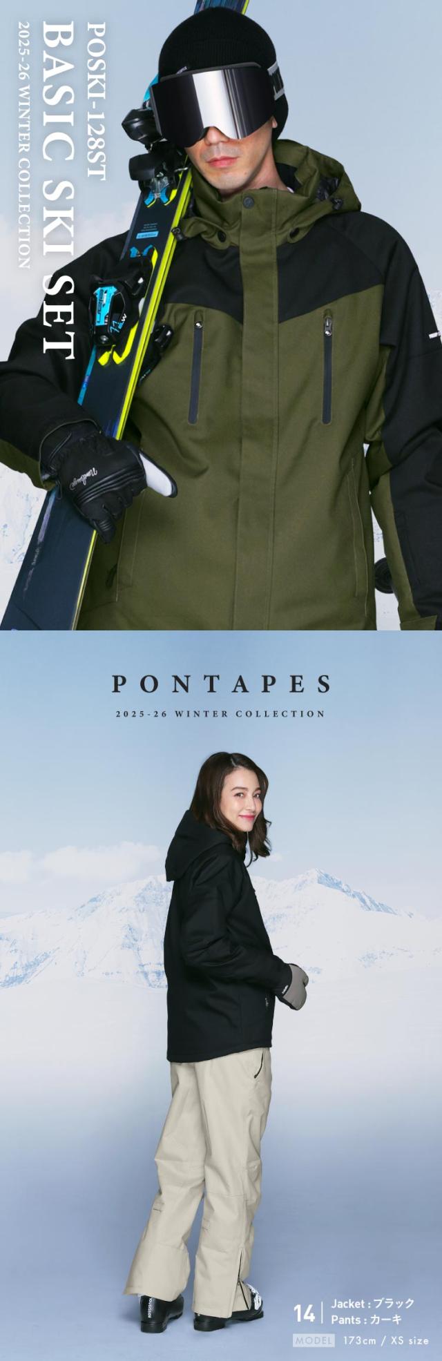 2025-2026モデル PONTAPES/ポンタぺス ユニセックス 高機能 ストレッチスキーウェア 上下セット POSKI-128ST