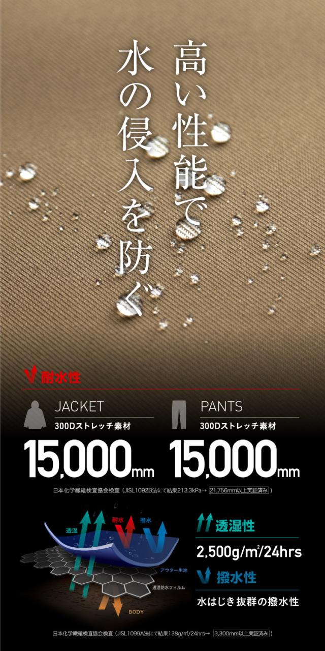300Dストレッチ/耐水圧15,000mm