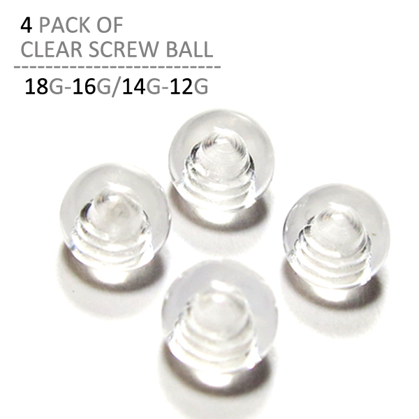 クリアスクリューボール 4個パック セット 18G 16G 14G 12G用 ボディピアス リテーナー キャッチ パーツ ボディーピアス トラガス ヘリックス 軟骨ピアス 舌ピアス へそピアス 口ピアス 透明ピアス 交換用 パーツ