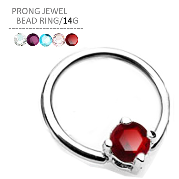 プロングジュエルビーズリング 14G シルバー サージカルステンレス ボディピアス 立爪 一粒ジュエリー 軟骨ピアス 耳ピアス メンズ レディース フープ キャッチ 片耳 軟骨 ピアス キャプティブ ビーズリング ボディーピアス