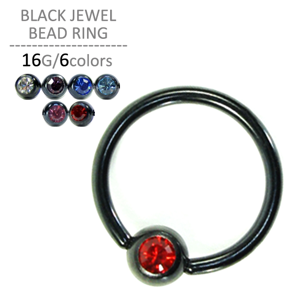 【ブラックジュエルビーズリング/16G】