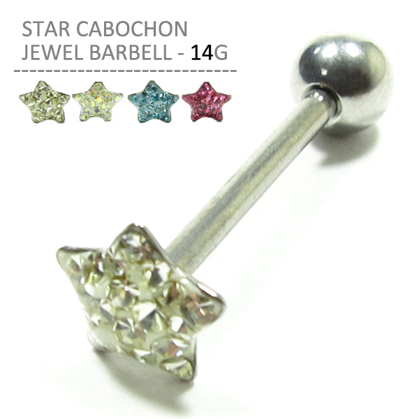舌ピアス 14G スター カボション ジュエルバーベル ボディピアス 耳ピアス 星 キラキラ かわいい ステンレス