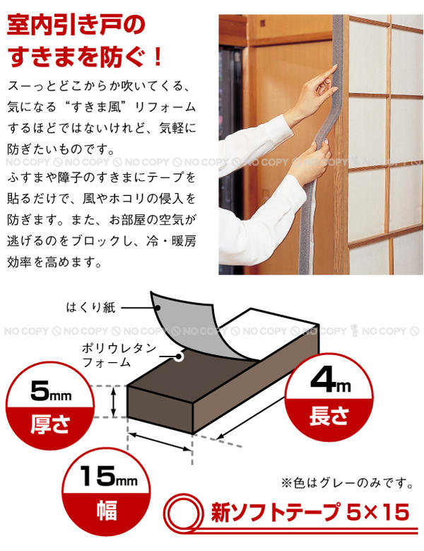 新ソフトテープ[5×15] E0030 [普通郵便送料無料] 室内・引き戸のすきまを防ぐ[NT]