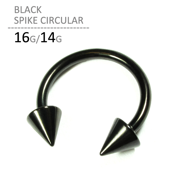 ボディピアス 16G 14G ブラックスパイクサーキュラーバーベル ブラック サージカルステンレス 軟骨ピアス 鼻ピアス 耳ピアス キャッチ つけっぱなし 金属アレルギー対応 片耳用 ボディーピアス メンズ レディース ユニセックス