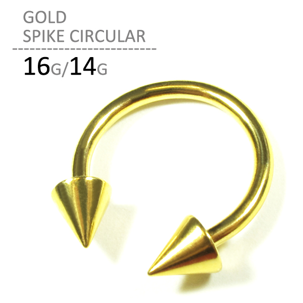 ボディピアス 16G 14G ゴールドスパイクサーキュラーバーベル ゴールド サージカルステンレス 軟骨ピアス 鼻ピアス 耳ピアス キャッチ つけっぱなし 金属アレルギー対応 片耳用 ボディーピアス メンズ レディース ユニセックス