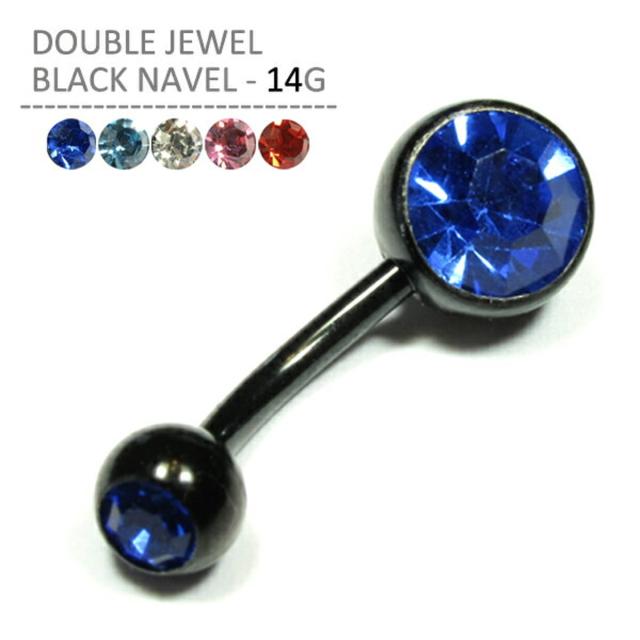 へそピアス ダブルジュエルブラックネイブル 14G ボディピアス ボディーピアス ブラック サージカルステンレス カーブドバーベル カーブバーベル 耳ピアス イヤーロブ ヘソピアス