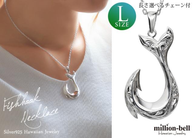 ハワイアンジュエリー ネックレス フィッシュフック モアナ ネックレス 刻印 無料 誕生石入れ可 Lサイズ 縦42mm シルバー925 ギフトラッピング可能 チェーン 長さ選べる メンズ レディース プレゼント 入学式 就職 お祝い 新生活 【品番:CG-SP2926】