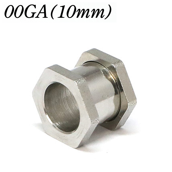 【メール便対応】フレッシュトンネル 六角形 00G(10mm) ヘキサゴン デザイン ハード サージカルステンレス316L ボディーピアス ロブ アイレット イヤーレット 00ゲージ┃