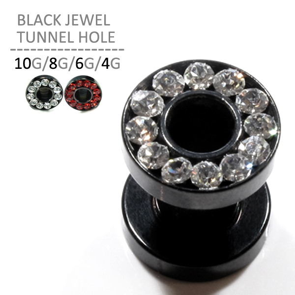 ブラックジュエルトンネルホール/10G 8G 6G 4G[ボディピアス/ボディーピアス]