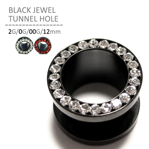 【ブラックジュエルトンネルホール/2G・0G・00G・12mm】