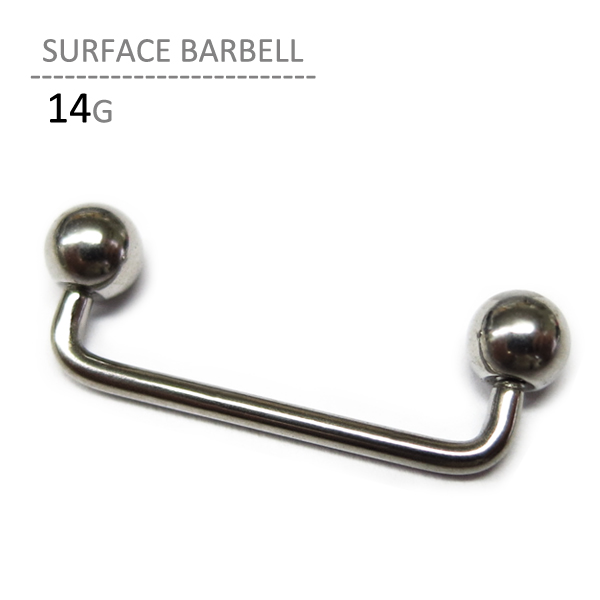 サーフェイスバーベル 14G サーフェース サージカルステンレス シルバー エクスターナル 外ネジ式 シンプル 舌ピアス 鎖骨ピアス 首ピアス 腰ピアス ヴァンパイア ボディピアス 90度 コの字型