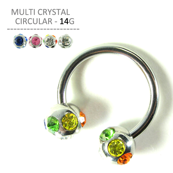 ボディピアス 14G 軟骨ピアス マルチクリスタルサーキュラーバーベル キャッチ レディース メンズ つけっぱなし かわいい サーキュラー CCB ジュエル 6mm サージカルステンレス 金属アレルギー対応 片耳用 軟骨 ピアス キラキラ 石 ボディーピアス