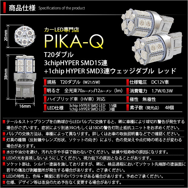 ・LED仕様: 3chip HYPER SMD LED 15個 / 1chip HYPER SMD LED 3個