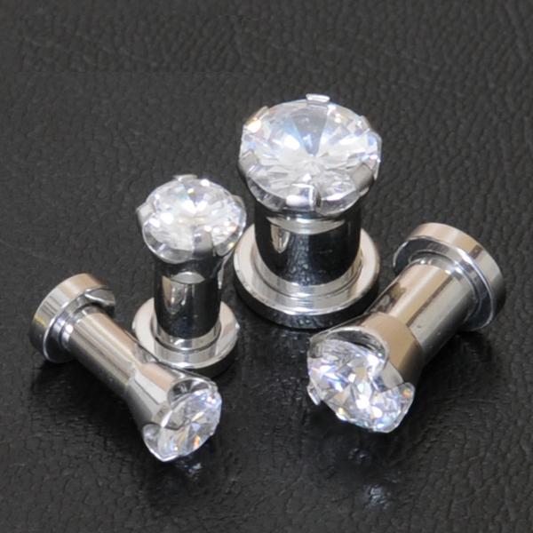 メール便 送料無料 フレッシュトンネル BIG ラインストーン 縦爪仕様 5/32inch(12mm) サージカルステンレス316L【ボディピアス ジュエル付 ロブ アイレット イヤーレット】 ┃