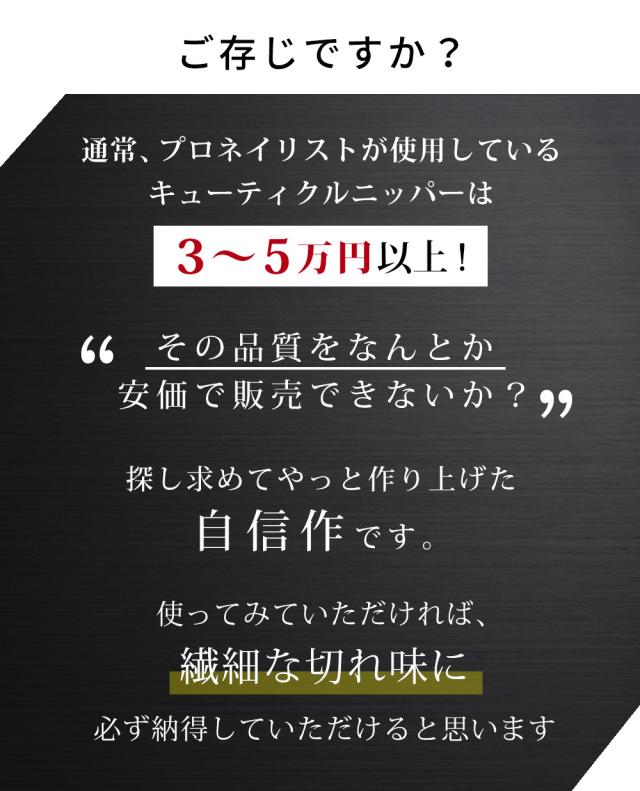 一度使えば、他のニッパーと比べて、圧倒的な切れ味・繊細さの違いが解ります。