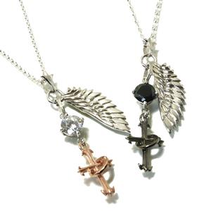 ホーリーウィングリングクロスジルコニアシルバーペアネックレス/送料無料/ペア/ネックレス/カップル/シルバー/2本セット
