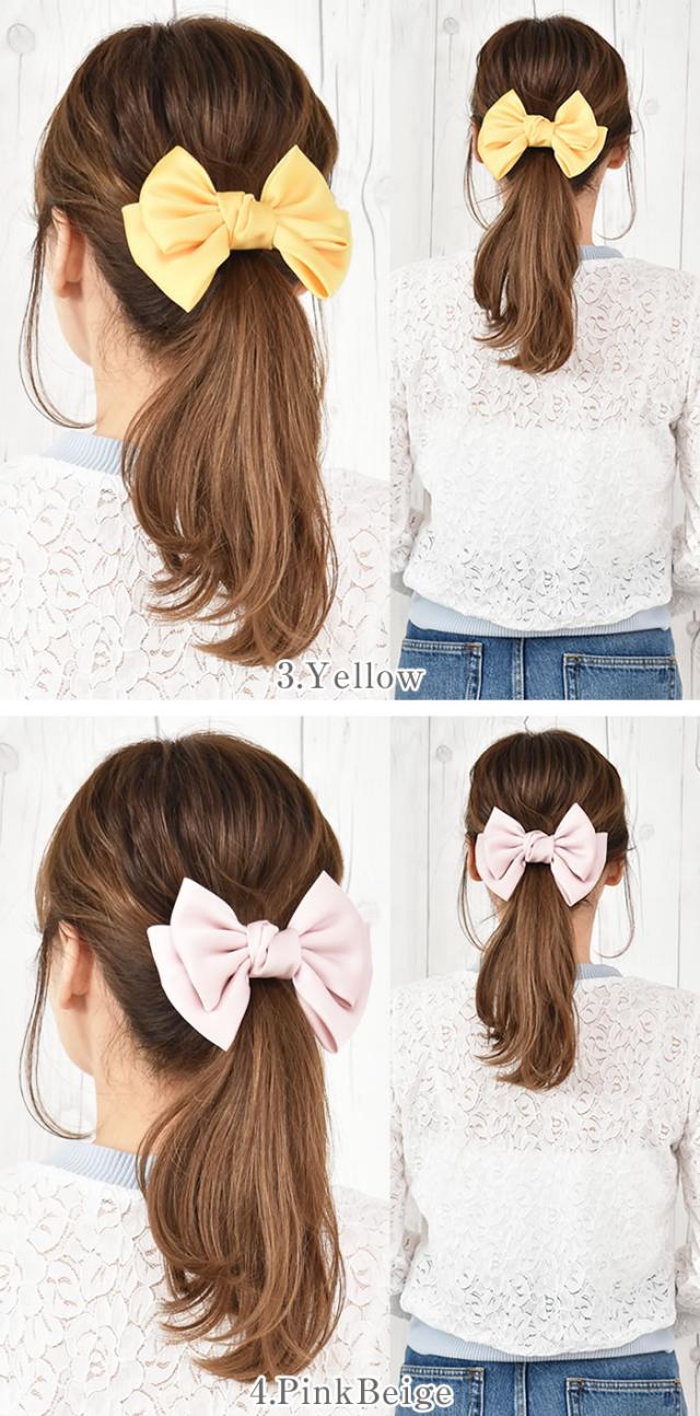 リボン バレッタ ヘアゴム ポニーフック 小さめ 卒業式 ヘアアクセサリー 髪飾り ヘアリボン ゆうメール便送料無料 3段 サテン クリップ パーティ 20代 30代 40代 ゴルフ レディース リッチサテンミニリボンヘアアクセ