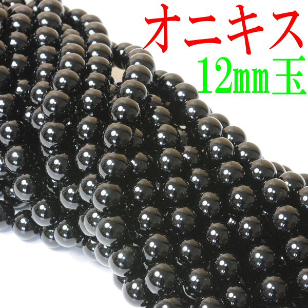【メール便対応】ブラック オニキス 丸玉パーツ 12mm 約40cm AAグレード 約32個【黒瑪瑙 パワーストーン 天然石】 ┃
