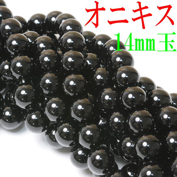 【メール便対応】ブラック オニキス 丸玉パーツ 14mm 約40cm AAグレード 約27個【黒瑪瑙 パワーストーン 天然石】 ┃