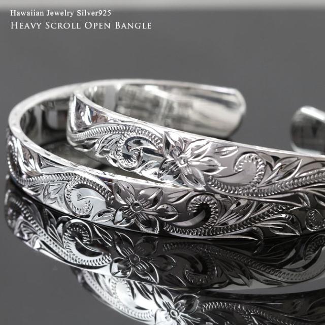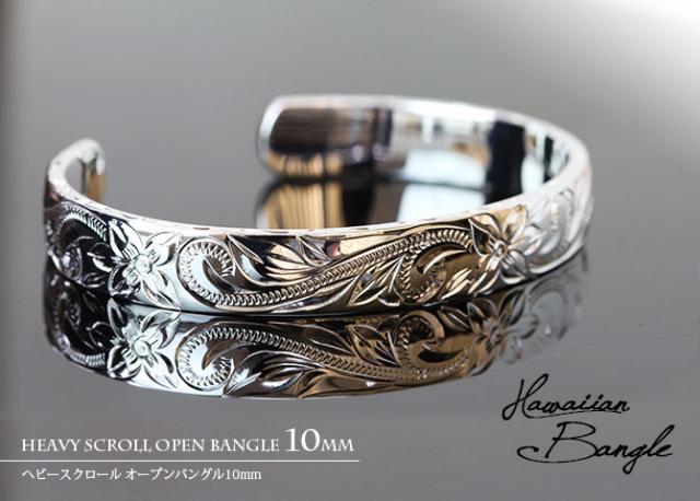 ハワイアンジュエリー バングル ペアバングル 幅10mm 刻印 無料 サイズが選べる オープンバングル ペア 2本セット フラット 厚み有 サイドに飾り彫り シルバー925 太め カップル 夫婦 プレゼント クリスマス 【品番:BM5027-10P】