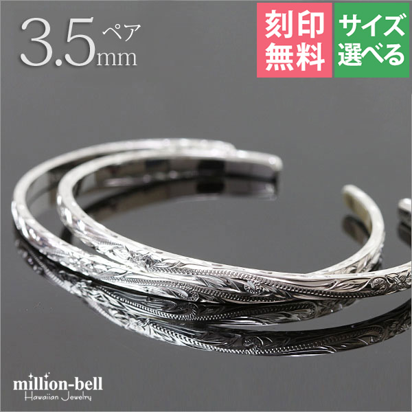 ハワイアンジュエリー バングル ペアバングル 幅3.5mm 刻印 無料 サイズが選べる オープンバングル ペア 2本セット フラット 厚み有 サイドに飾り彫り シルバー925 細身 カップル 夫婦 プレゼント ホワイトデー 卒業式 入学式 【品番:BM5027-4P】