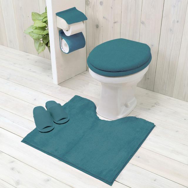 トイレファブリックシリーズ『カラーショップ』には、スリッパの他に、トイレマット、フタカバー、便座カバー、ペーパーホルダーカバーがあります。シリーズでコーディネートすれば統一感のあるトイレ空間に仕上がります。