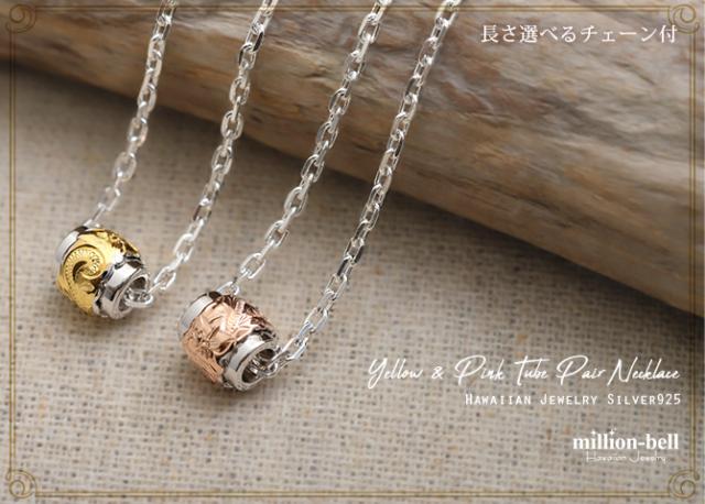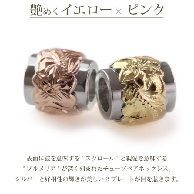 ハワイアンジュエリー 2トーン チューブ ペアネックレス