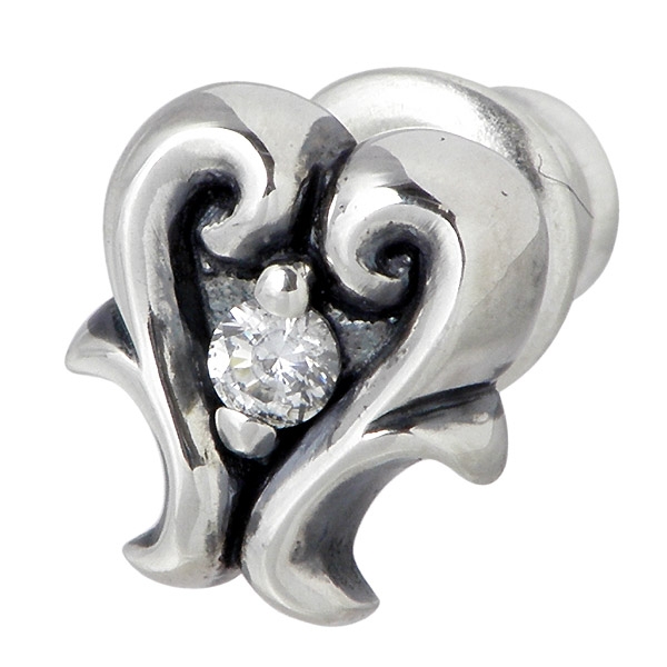 愛情や優しさを司るというトランプのハートを立体的に仕上げたゴシックテイストのシルバーピアス。