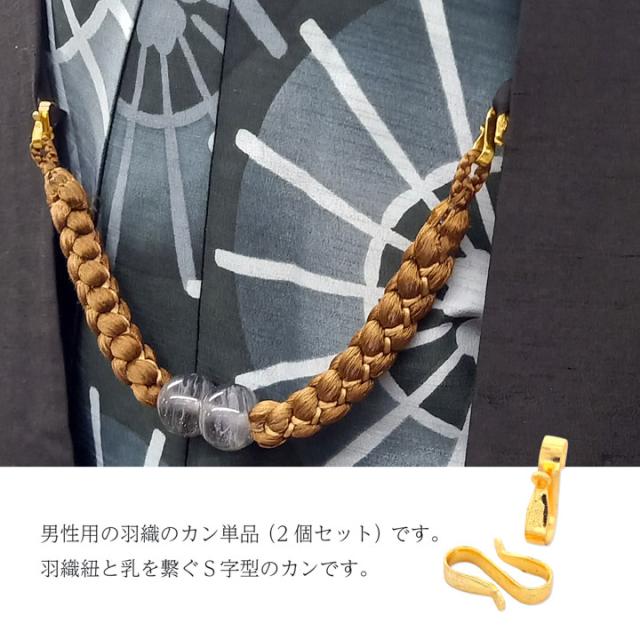 男性用の羽織のカン単品(2個セット)です。羽織紐と乳を繋ぐS字型のカンです。 【色】ゴールド【サイズ】約1.3cm 日本製