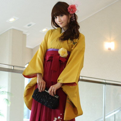 卒業式 袴セット レンタル 2尺袖着物&袴 フルセットレンタル 黄 緑 袴レンタル 上品