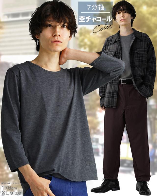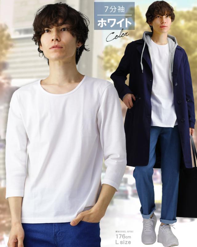 tシャツ 七分袖 メンズ vネック uネック 深vネック 無地 カットソー インナー 黒 ブラック ネイビー タイト キレイめ お兄系 キレカジ アメカジ トップス 7分袖 大きいサイズ コットン 綿 ポリエステル