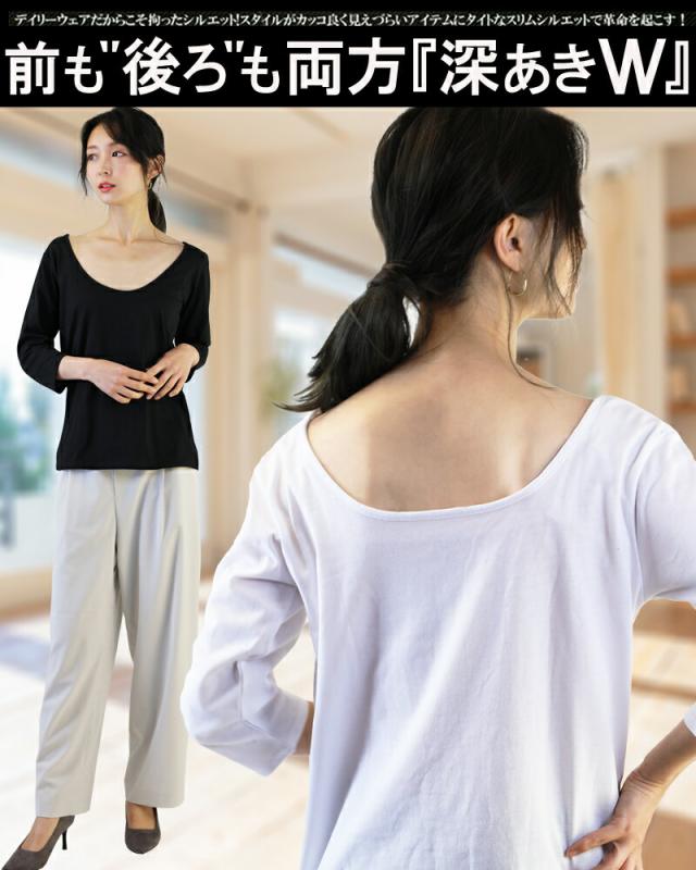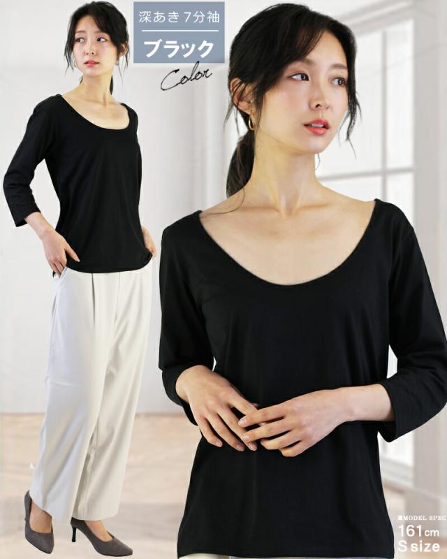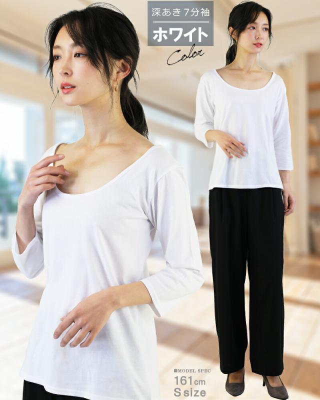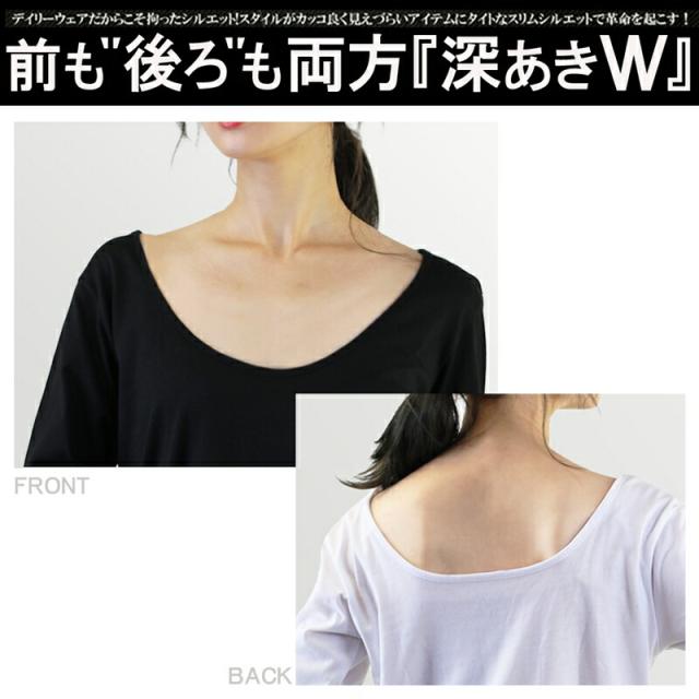 深あき インナー レディース 7分袖 オフショルダー S M L LL 3L 肩開き 肩あき 深開き 襟ぐり広め 保温 長袖 肌着 ボートネック バレエネック 大きいサイズ 3lまで