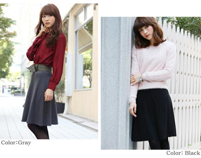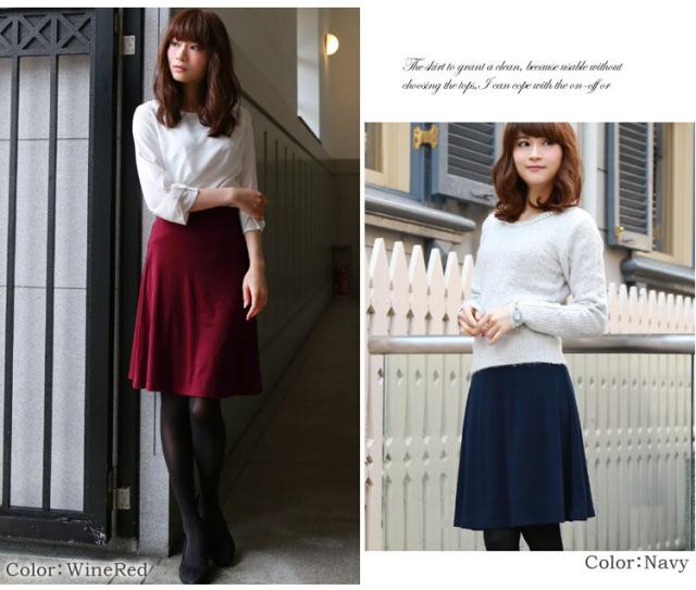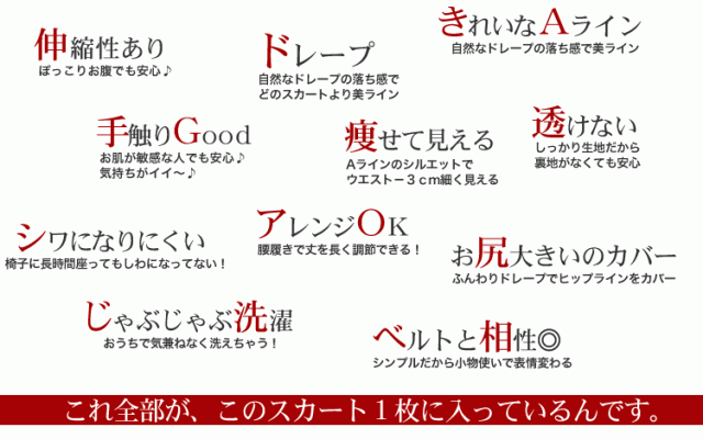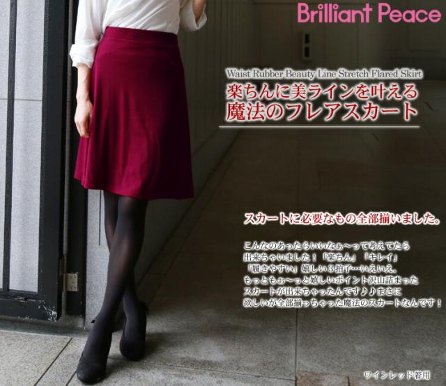 BrilliantPeace 日本製ウエストゴム美ラインストレッチフレアスカート スカート