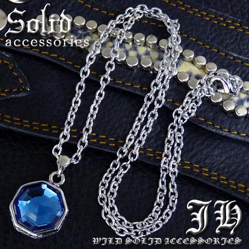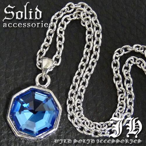 大粒czダイヤモンドカット 蔦柄 八角形台座topネックレス シルバーcolor ブルーダイヤ 青【 n715 】