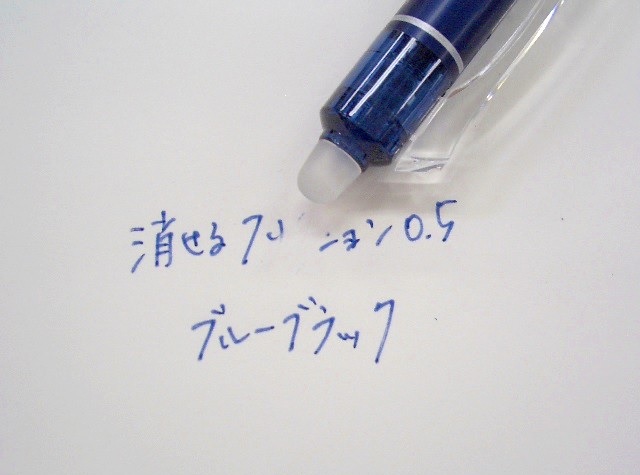 ペンの頭に付いたラバーでこすると、キレイに消えます。