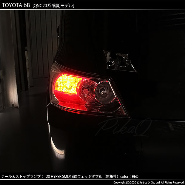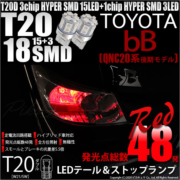 トヨタ bB[QNC20系 後期モデル]対応テール&ストップランプ用 LEDバルブ T20ダブル HYPER SMD18連ウェッジダブル LEDカラー:レッド 1セット2個入り | ||||