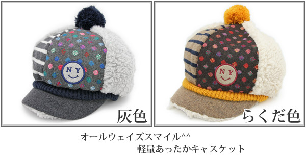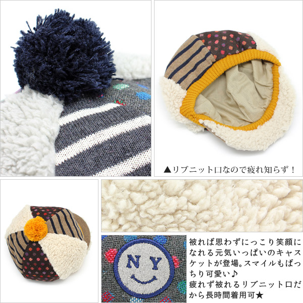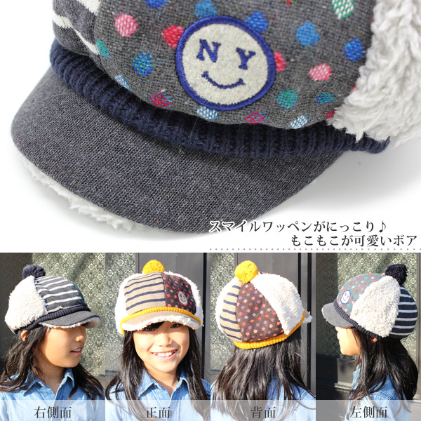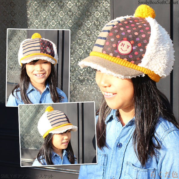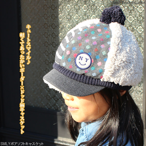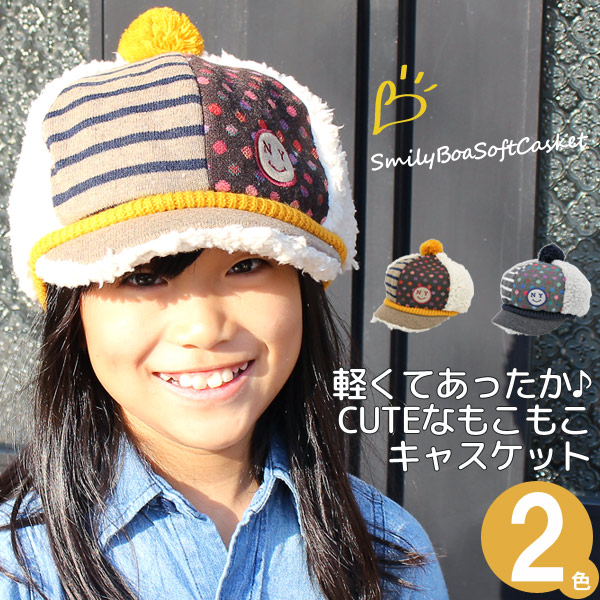 帽子 キッズ [メール便可] 子供用 キャスケット 秋冬 CAP 男の子 女の子 / キッズ SMILYボアソフトキャスケット