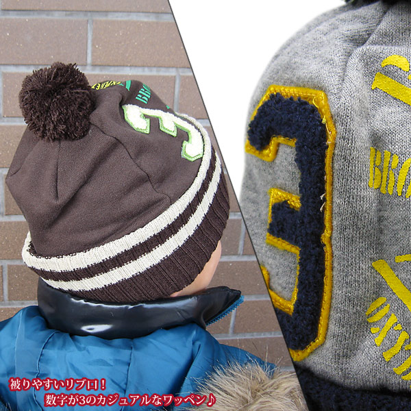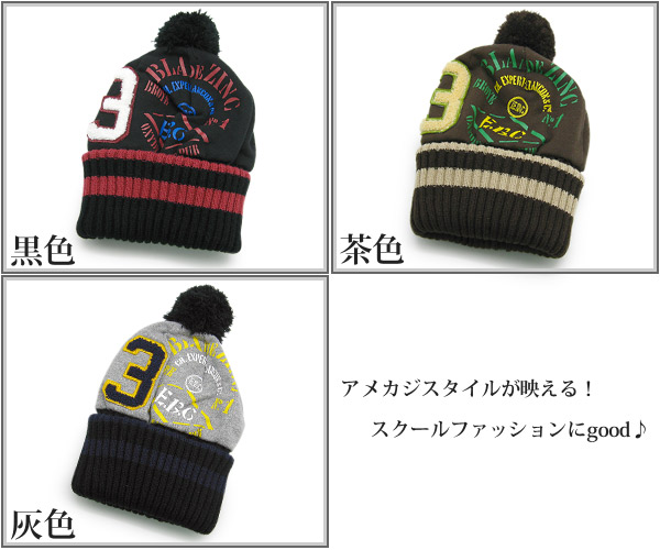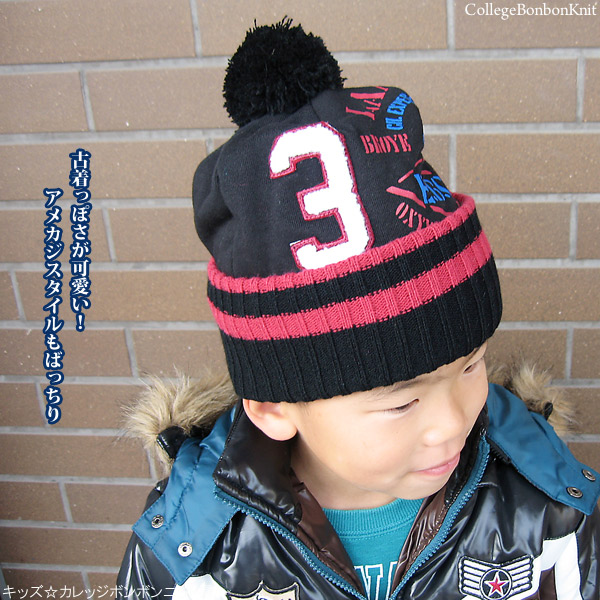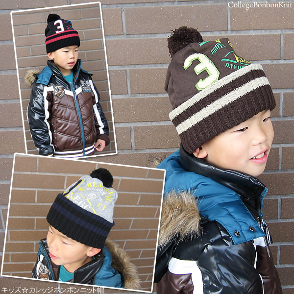 帽子 キッズ [メール便可] ニット帽 子供用 ボンボン アメカジ ストリート 秋冬 / キッズ カレッジボンボンニット帽