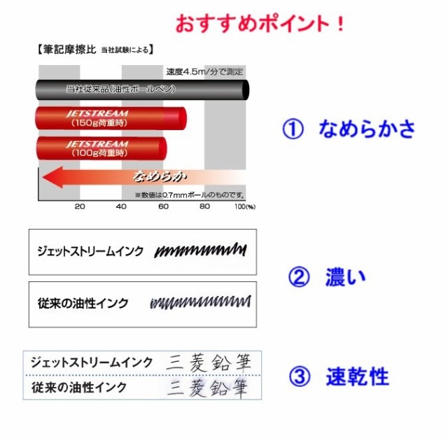 ボールペンの芯は、濃くなめらかなジェットストリーム芯。