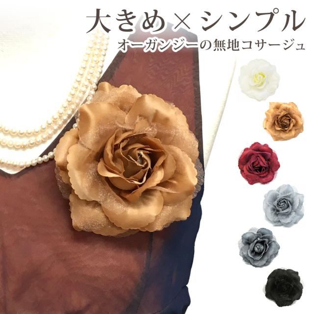 大きめ シンプルコサージュ 結婚式 型崩れしにくい オーガンジー 無地 ヘアクリップ付き 6n 布 花 大きいサイズ 丈夫 レディース フォーマル 卒業式 卒園式 入学式 スーツ ママ 幼稚園 小学校 発表会 お洒落 お呼ばれ 披露宴 パーティ